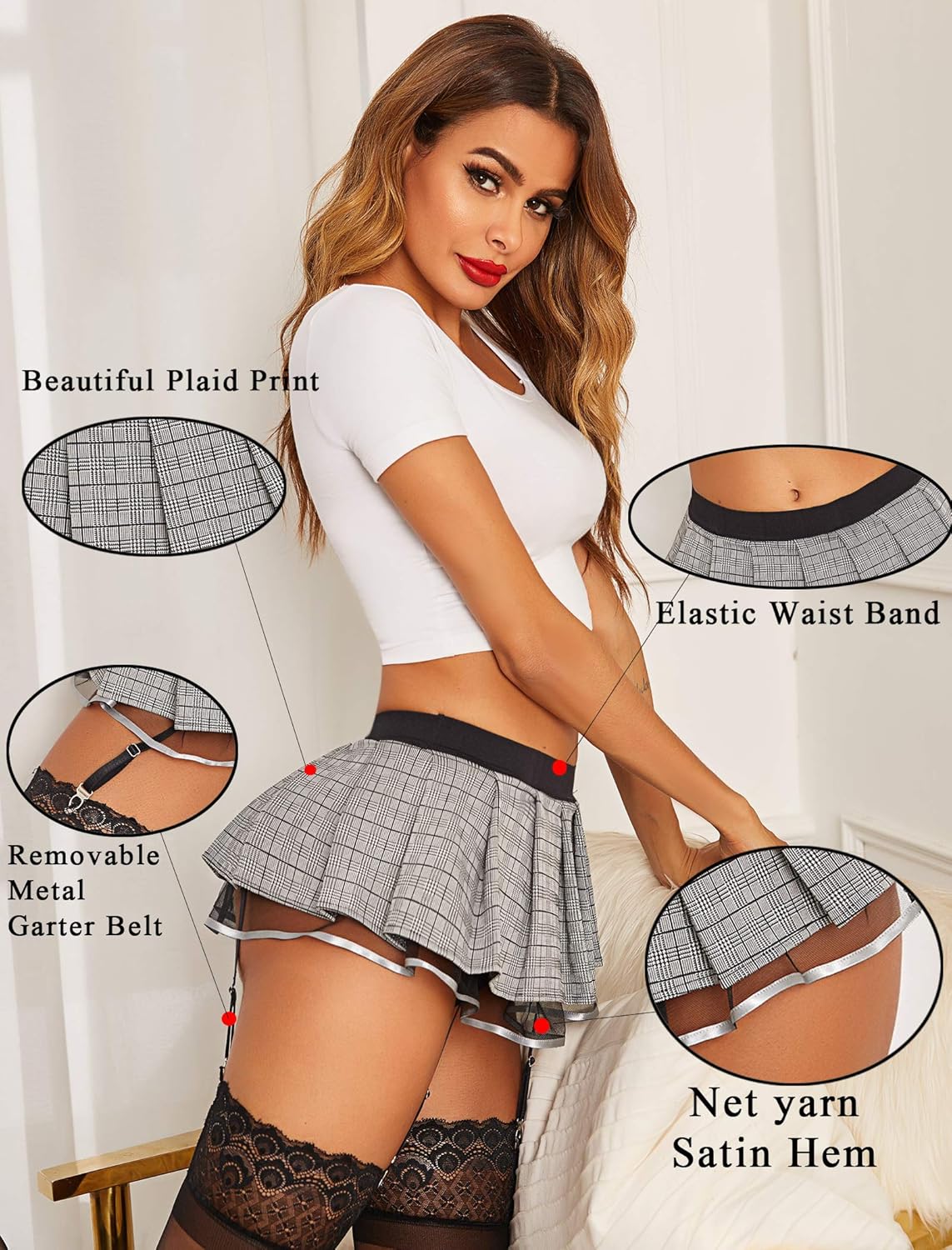 Avidlove Women Lingerie Role Play Pleated Costume Mini Skirt With Garter Schoolgirl Outifts