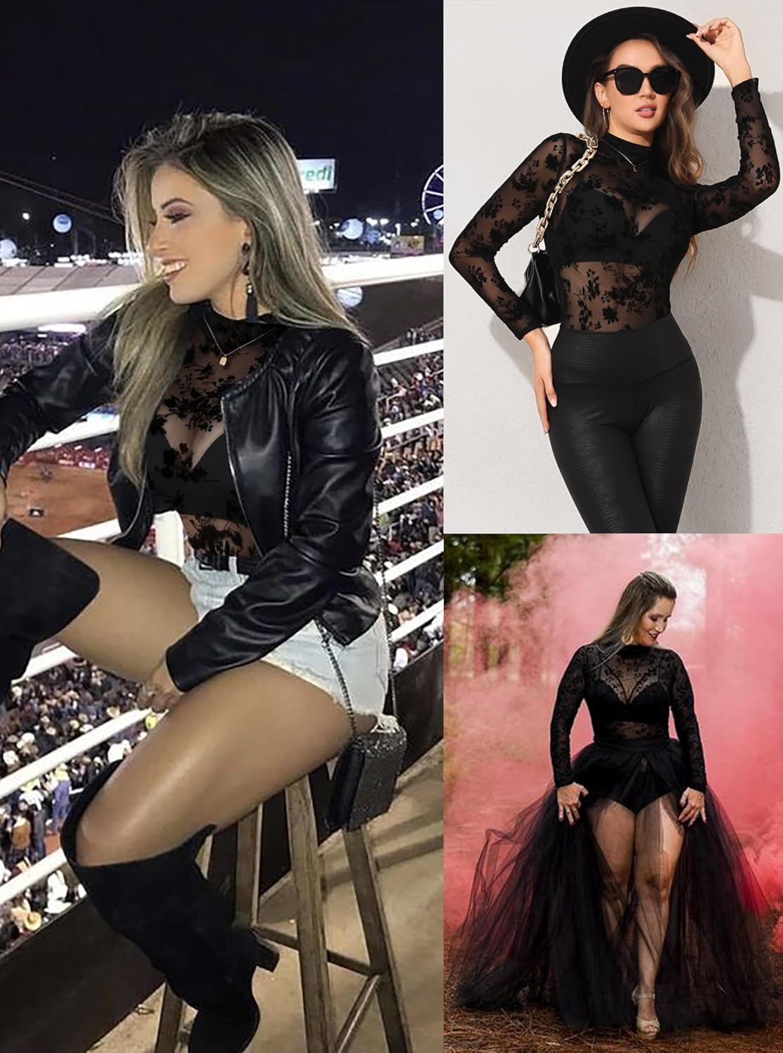 Be the first to review “Women Mesh Top Floral Mesh Long Sleeve Tops Mock Neck See Through Tops Fitted Sexy Going Out Tops”